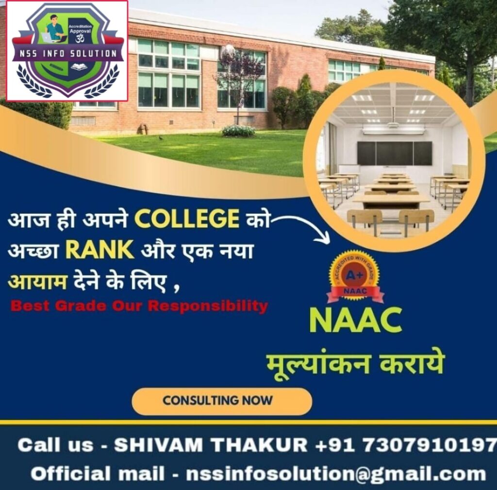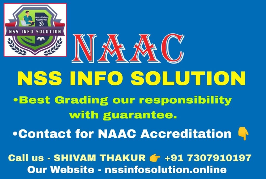 We know that NAAC is very challenging and it Is team work project.we are providing NAAC Accreditation Consultancy, In this consultancy, we are providing all guidance how to make S.S.R (S.A.R) report For Best grading, and providing all guidance, doc, and format for obtaining best grading. Now, NAAC ASSESMENT is very important FOR Higher Education in all Education industry, like Art College, Science College, Pharmacy College, Engineering College, Medical College, Management College, Nursing College, Law Colleges, & all type of University.