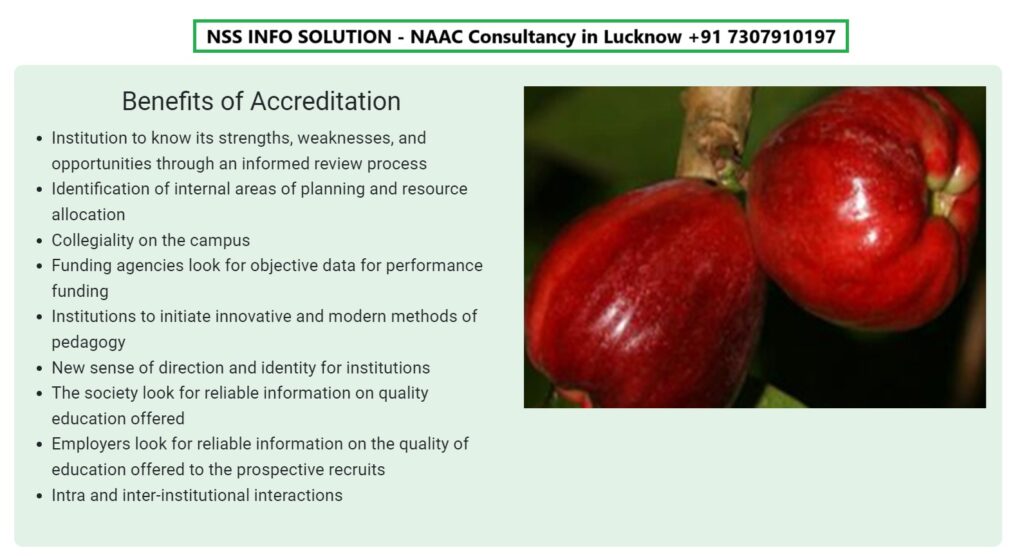 - NAAC accreditation helps the higher learning institutes to know its strengths, opportunities, and weaknesses through an informed review process.